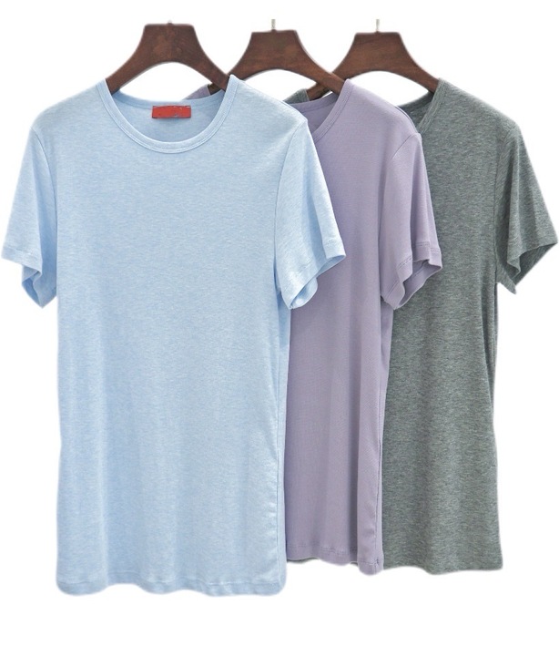 女性用カシミヤブレンド半袖Tシャツソフトカジュアルベーシックトップ通気性汗吸収性在庫またはカスタムバルク